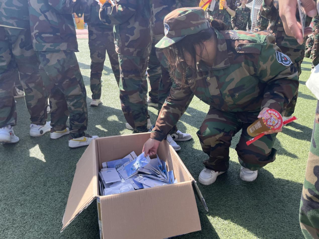 随后,新生们收到了学院准备的清凉饮品以及具有学院特色的文创钥匙扣,训练场上笑声与感谢声交织,一份份饮品和礼物将学院的温暖与关怀传递到每一位新生心中。