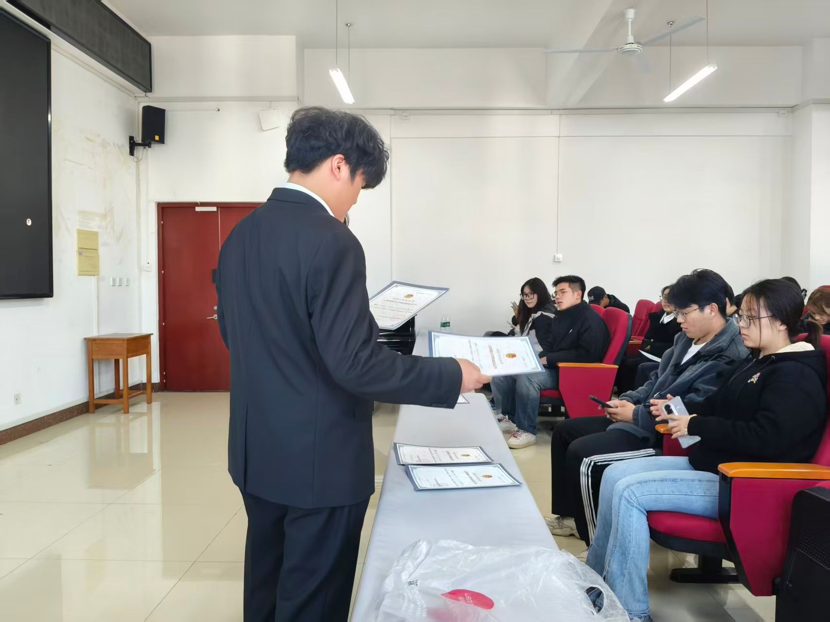 2025年11月12日,建筑与艺术设计学院团委在明德楼B401召开本次团课闭幕式。团课的闭幕宣告这本期团课的结束,通过考核的学生共有87人,准予毕业,并颁发毕业证书。