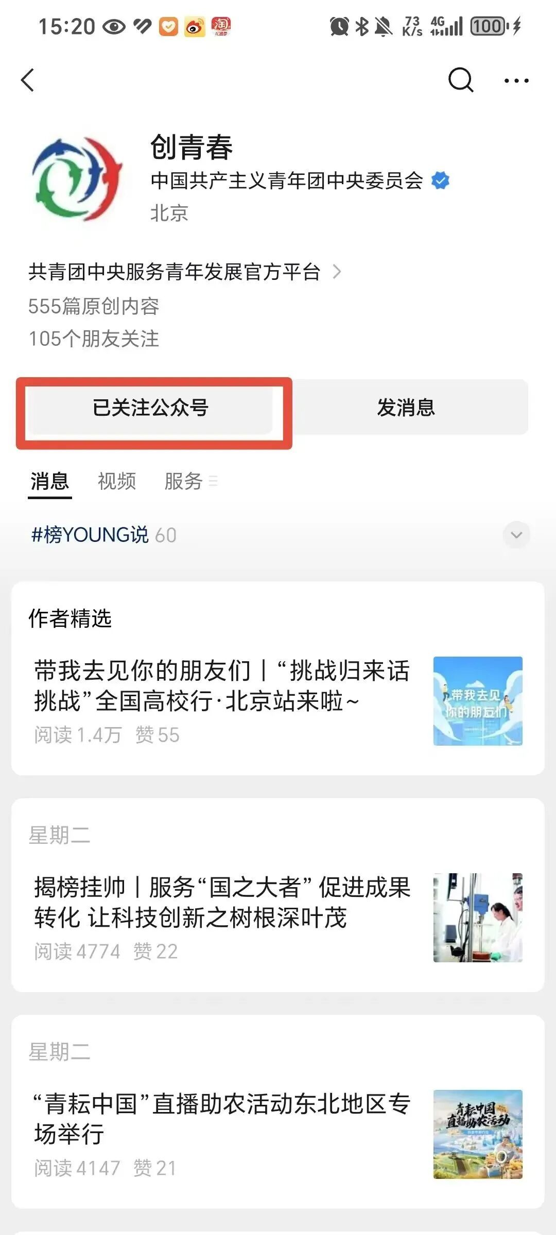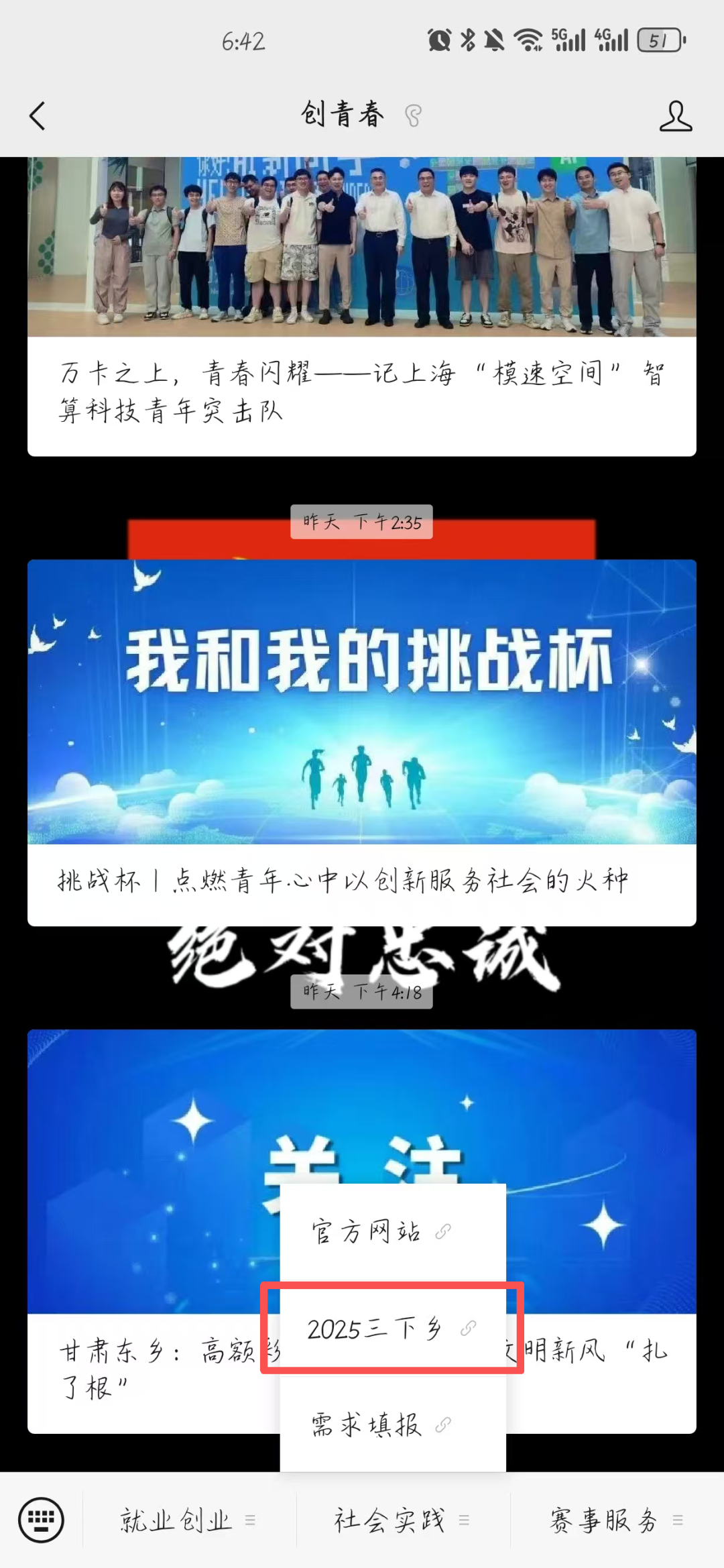 第一步:关注“创青春”公众号