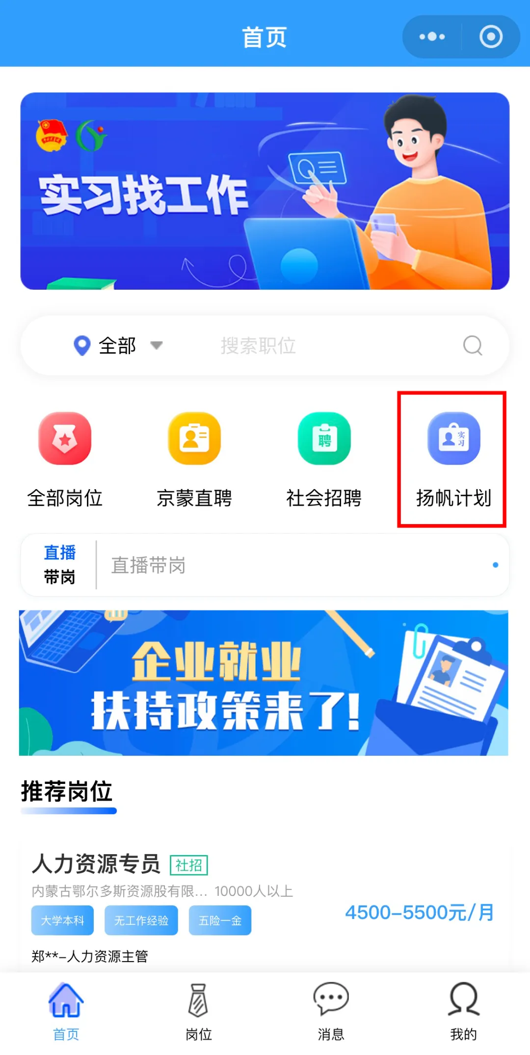第一步:关注“巴林左旗共青团”公众号,选择“基层建设”栏目,再选择“扬帆计划”栏目;第二步:点击“我要应聘”并根据指引进入“扬帆计划”专属页面; 第三步:选择【我的】-【授权手机号】,按照提示输入手机号码进行注册、建档,完善简历及求职意向;第四步:实习职位投递:个人职业成长档案完成度达80%以上,即可首页【职位】选择心仪岗位进行投递。可在【我的】页面查看投递进度。经与用人单位沟通确认签订实习协议或录用之后,即可进行实习啦。实习结束后,实习单位将会为实习合格的同学出具统一的实习证明哦;第五步:实习结束后点击【我的】-【求职证明】即可下载实习证明了!