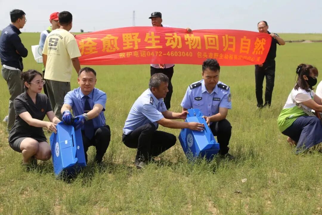 随后,由多部门组成的联合巡护队深入达茂旗西口子,在包头市野生动植物救护中心专业人员的指导下,现场举行了隆重的野生动物放归仪式,此次放归的野生动物均为经过专业救治康复的珍稀物种,包括猎隼、白尾鹞、长耳鸮、红隼、斑嘴鸭、赤麻鸭、环颈雉、戴胜、刺猬等20只。