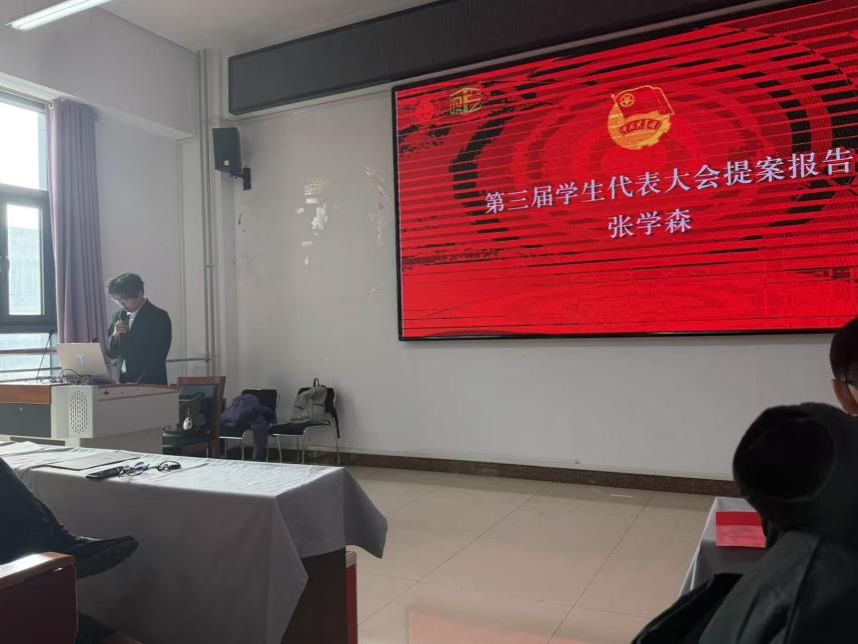 随后,第二届学生会执行主席张学森宣读了《建筑与艺术设计学院第三届学生代表大会提案汇总报告》,本次大会共征集有效提案52份,聚焦校园基础设施优化、生活服务升级、权益保障强化三大核心诉求,精准捕捉同学们的急难愁盼,充分展现了学子对校园建设的责任感与参与热情。