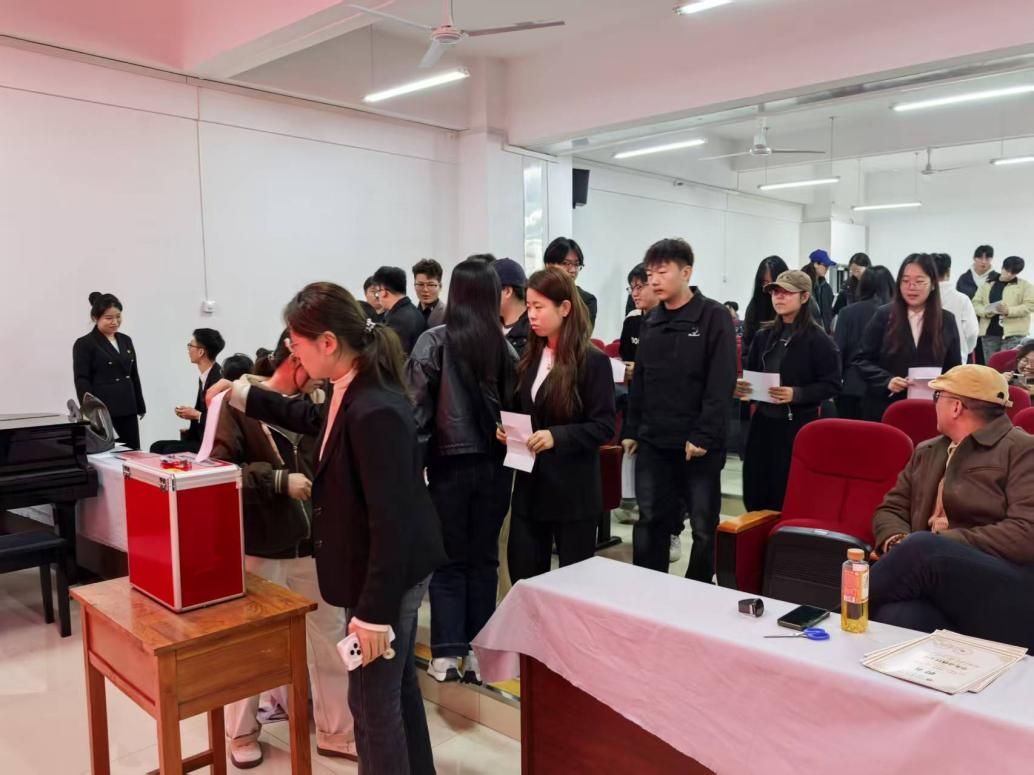 为深入贯彻党的二十大精神,筑牢学院学生思想根基,强化学生组织服务效能,推动学生工作高质量发展,我院于10月25日在明德楼B401召开第三届学生代表大会。大会以“思想引领铸魂,服务同学扎根”为核心,系统总结学生会过往工作、选举新一届学生组织核心力量、倾听学生心声,凝聚青春共识,共绘学院发展新蓝图。团委副书记张轩、辅导员刘星宇出席大会。