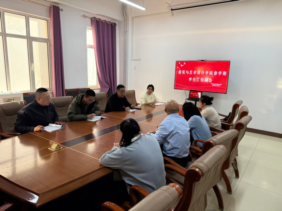 建筑与艺术设计学院召开春学期学生工作例会 2026年2月27日,建筑与艺术设计学院召开春学期学生工作例会,由副书记副院长吴宇主持,全体辅导员参会。 会议部署多项重点工作,包括返校数据核查与安全排查;启动心理健康重点排查与帮扶,开展学业帮扶;明确年度学生工作核心任务,强化学风建设;推进安全防范工作,规范电动车管理;全面部署学生体能测试工作等。 会议要求全体辅导员严格落实工作部署,做好记录并及时上报数据,强化协同配合,确保学生管理及各项重点工作顺利推进。 \