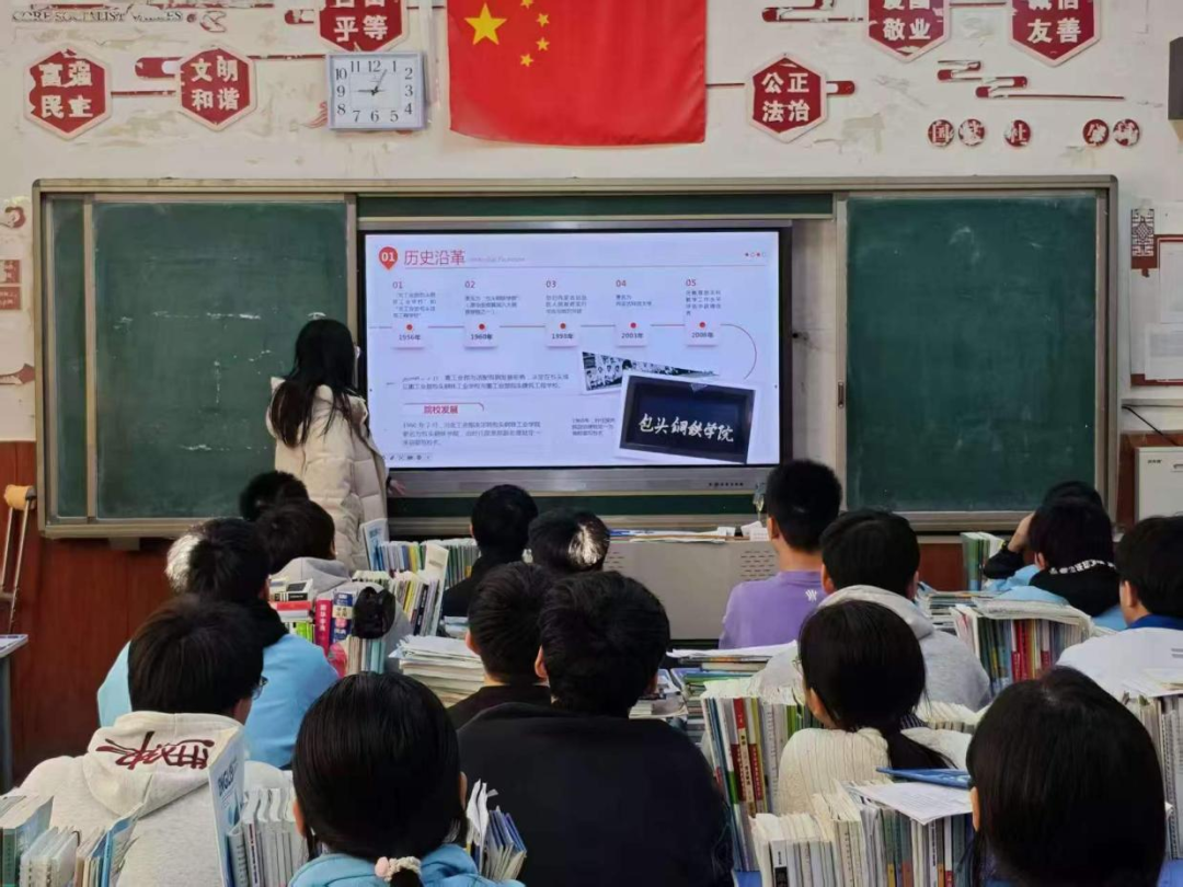 为搭建高校与中学人才培养衔接桥梁,传递学校办学理念与育人成果,2016年1月19日,内蒙古科技大学大一学子张志欣重返高中母校赤峰市新惠中学,在曾经的班主任班级开展主题宣讲活动,以校友身份分享成长感悟,解读高校特色,并为高三学子送上带有学校标识的纪念品与高考祝福。