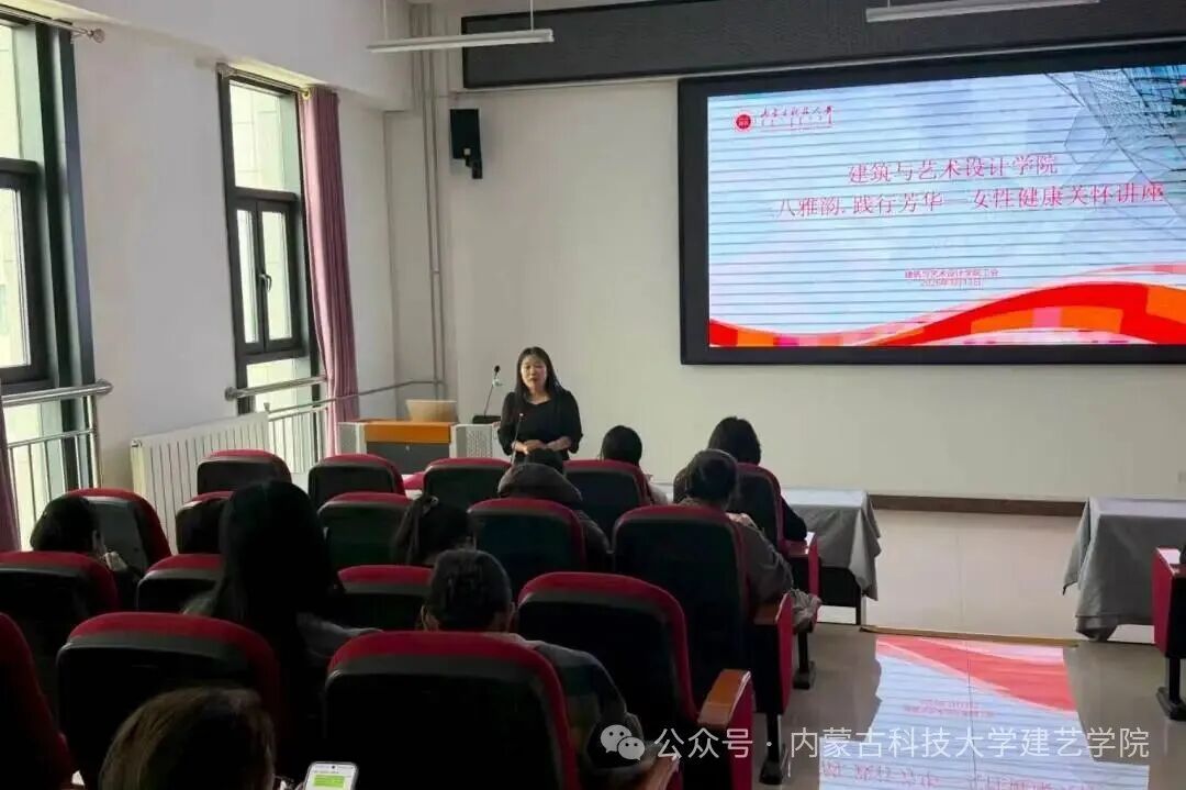 为庆祝第114个国际妇女节,3月7日,建筑与艺术设计学院以"女性健康关怀与团队共融"为主题,创新开展"三八雅韵·健行芳华"特色活动,通过中医养生讲座形式,为全院女教职工送上节日关怀,助力身心健康与专业发展双提升。