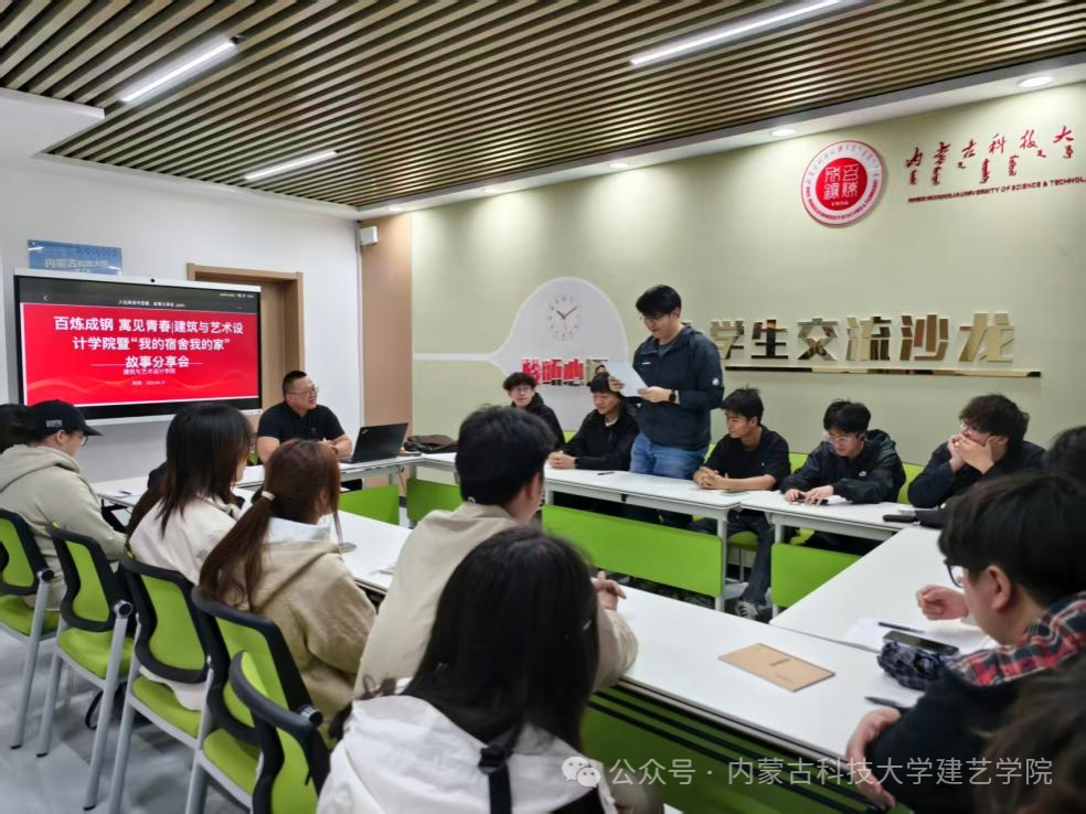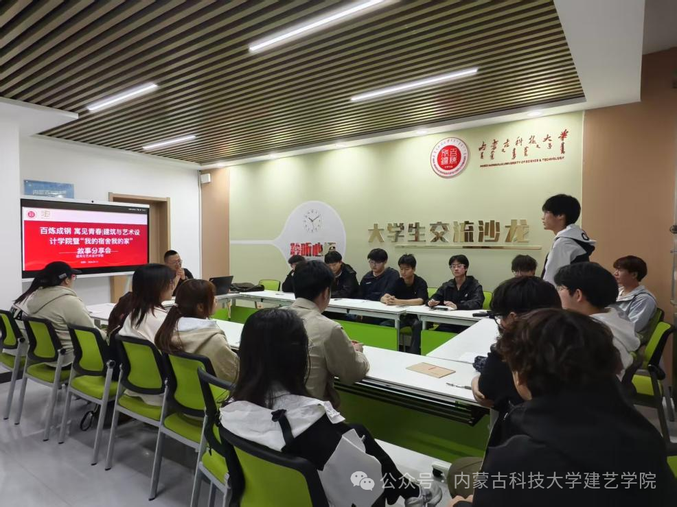 近日,在刘星宇和贾晓冉老师的带领下,内蒙古科技大学建筑与艺术设计学院“百炼成钢 寓见青春”暨“我的宿舍我的家”故事分享会在一站式学生社区服务大厅大学生交流沙龙室顺利开展。