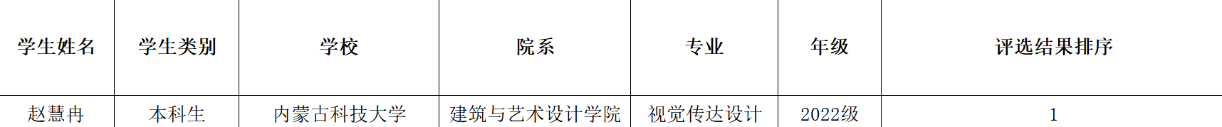 内蒙古科技大学建筑与艺术设计学院2025年度华安公益助学金建议获奖名单公示 现将内蒙古科技大学建筑与艺术设计学院2025年度华安公益助学金建议获奖名单公示,具体公示内容如下: 凡对公示对象有异议,可通过电话、来访等形式反映有关情况。 公示时间:2025年12月1日15:00—12月4日15:00 受理时间:工作日上午8:30—12:00 ,下午3:00—5:30 联系电话:0472-5953902 地点:明德楼B202 联系人:贾老师